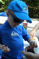 And, well, hanging in the woods at Raystown for an extended weekend you're bound to come across some yummy wild berry bushes! Knowing which ones are okay to eat, my mom and I picked a few ...and of course something for G to try like his mama did years ago!